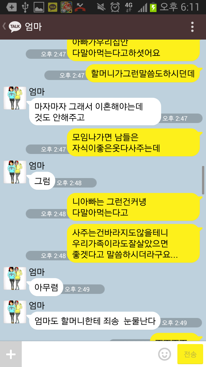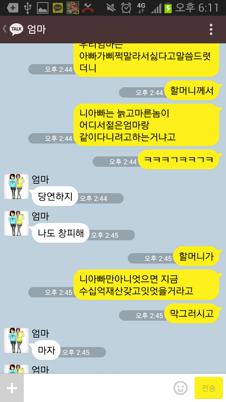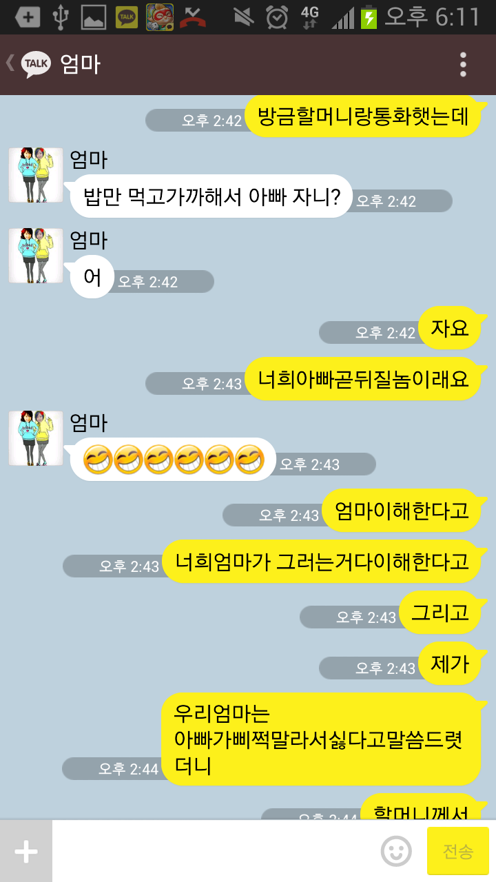 근데 우리엄마는 아무리 주장해도 아빠가 받아들이질 않으니 결국 전부 따라가긴 하셨다.